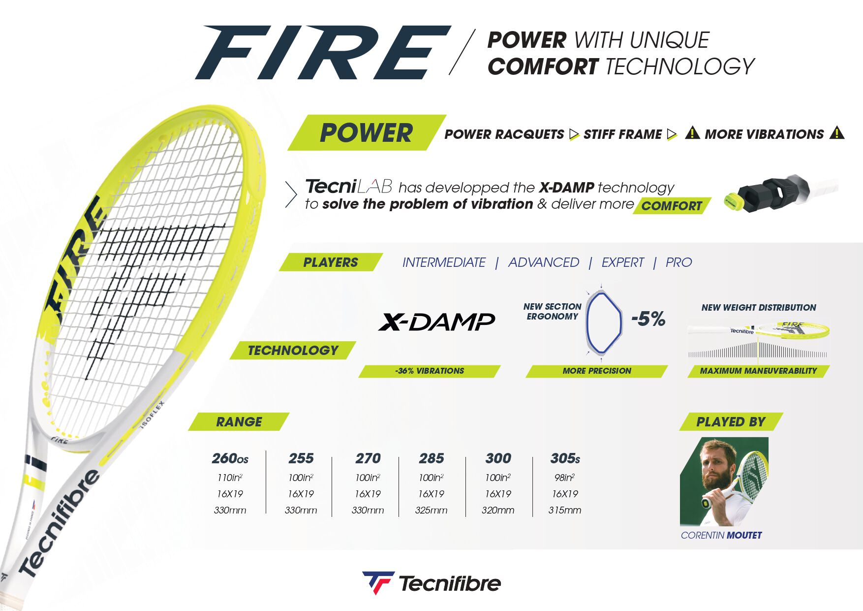 Turn up the heat with FIRE. Designed for explosive performance , the Fire features exclusive X-Damp technology. It reduces vibrations by 36% for unparalleled comfort and control.