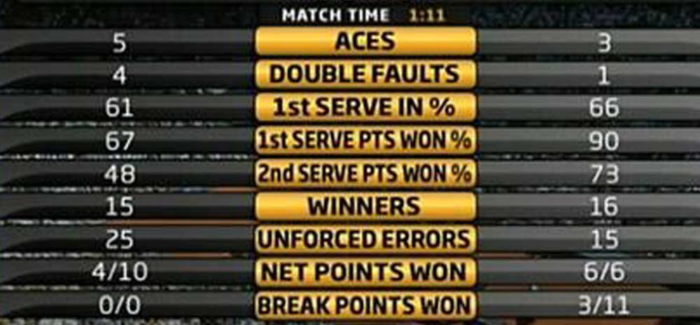 Ces indications sont très révélatrices des zones préférentielles de Roger Federer, capable de toucher toutes les zones avec le même lancer, créant l’incertitude en permanence chez ses adversaires.